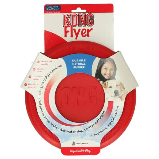 Gumijasti frizbi za pse KONG je zasnovan za aktivne pse, ki potrebujejo kakovostno in varno igračo za igro prinašanja. Izdelan je iz legendarne KONG gume, ki slovi po svoji trpežnosti, hkrati pa ostaja dovolj mehka, da ne poškoduje pasjih zob. Frizbi je izjemno lahek in fleksibilen, zato ga brez težav vzamete s seboj na vsak sprehod ali izlet.